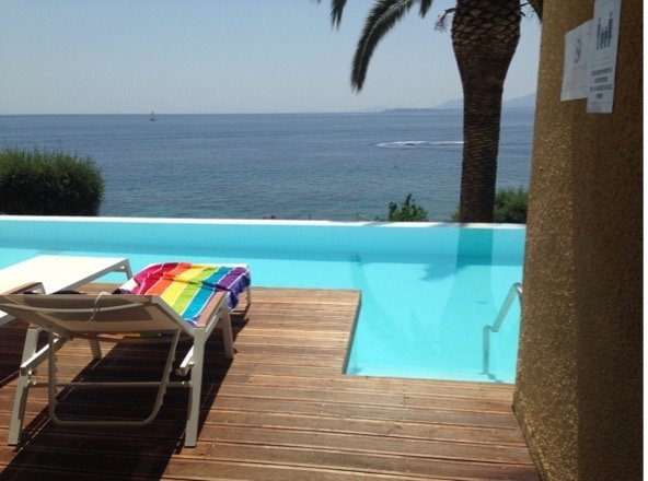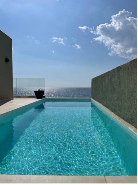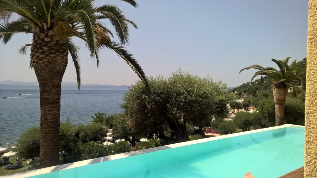 We booked to stay for a week in a balcony room, which had a beautiful view onto the Ionian Sea. But after enjoying our first cocktail on the gorgeous rooftop bar on the first evening, we took a peek down onto a set of rooms which seemed to be connected to a shared pool. Hooked. A modest upgrade fee later and we were being helped to move our luggage into one of those rooms.