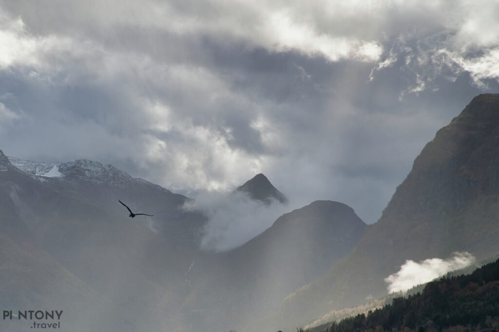 The road leading up the valley is narrow so do be mindful, especially when the excursion coaches go past. The sides of the valleys, lush in foliage, are covered in small waterfalls adding to the overall ambience. And as the mists roll quickly, each time you pass through the view could be quite different. About a mile up the road from the town, we could hear the rumble of the Laukifossen waterfall at the mouth of the Floen lake.