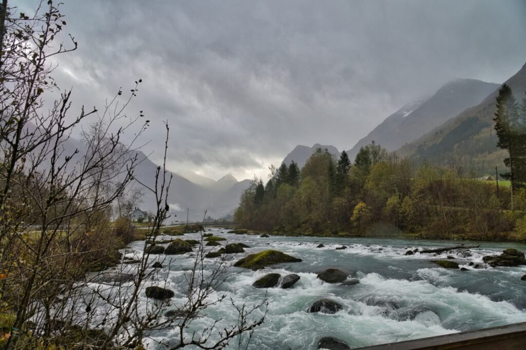 The town is not very big, has a few outlet shops selling essentials for outdoor activities at very reasonable prices (for Norway). The Yris Cafe and restaurant is nearby, where we saw a lot of our fellow passengers and crew enjoying coffees and meals. Next door is a bridge over the river Oldeelav, a fantastic photo spot where we caught more adventurous people kayaking (an option you can try during most of the season).